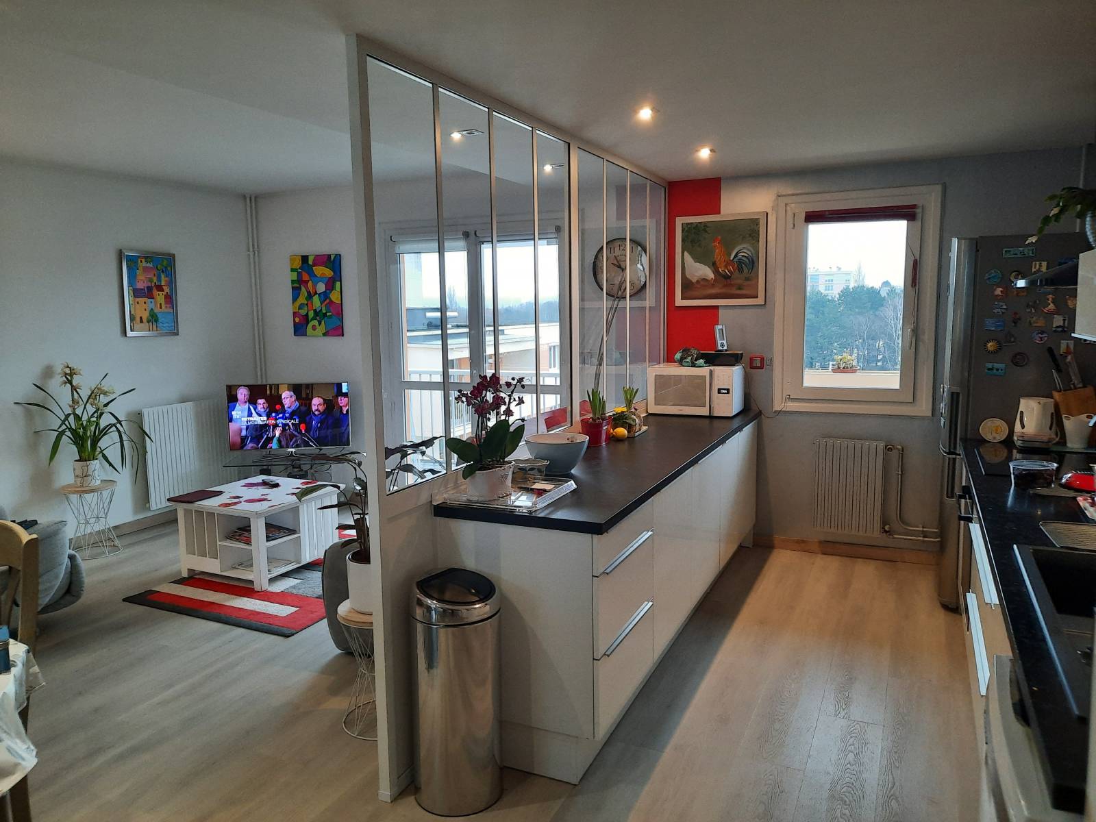 Cette verrière qui délimite la cuisine et le séjour permet de